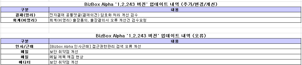 BizBox Alpha '1.2.243 버전' 업데이트 내역