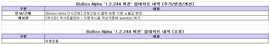 BizBox Alpha '1.2.244 버전' 업데이트 내역