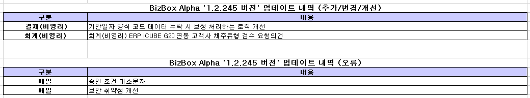 BizBox Alpha '1.2.245 버전' 업데이트 내역