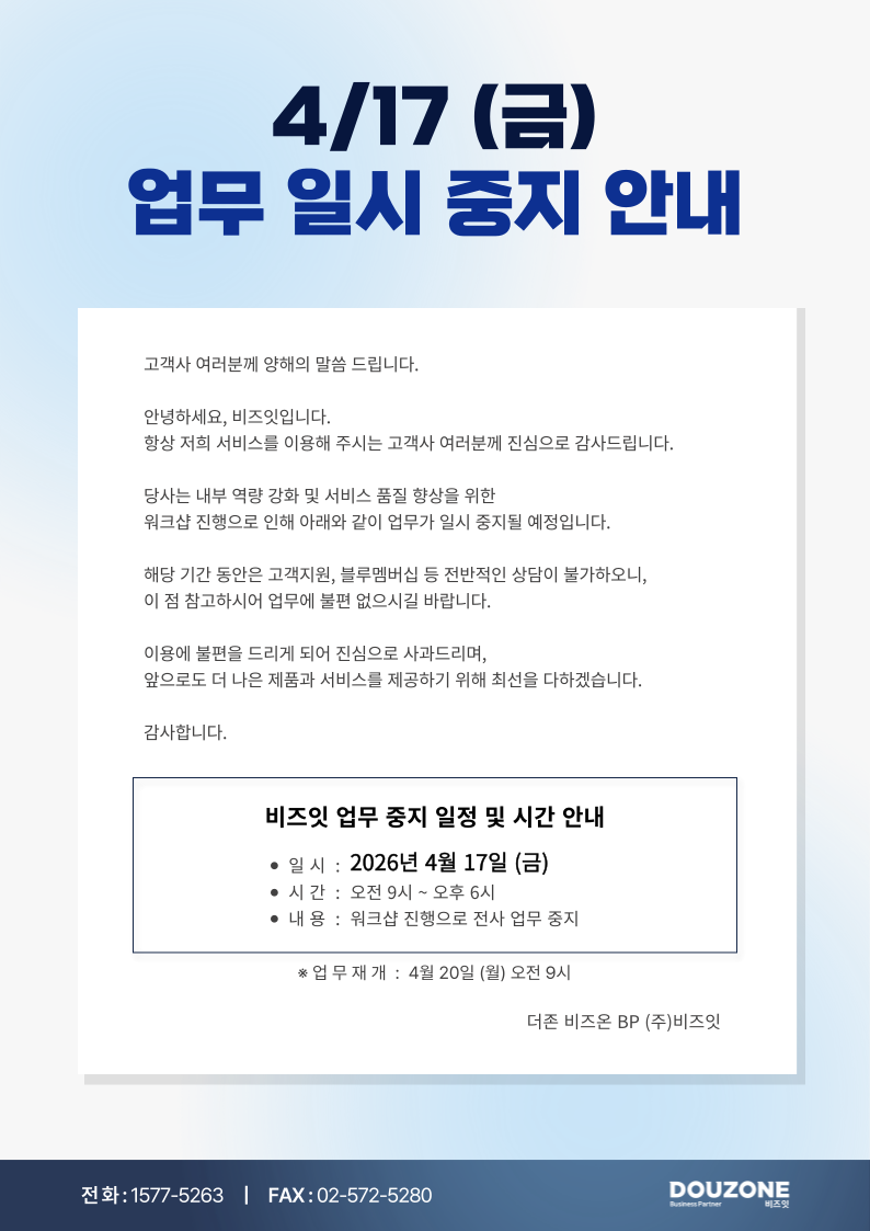 [비즈잇] 4/17(금) 워크샵으로 인한 업무 일시 중지 안내