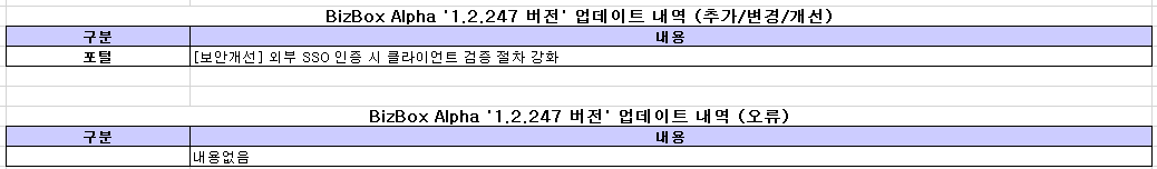 BizBox Alpha '1.2.247 버전' 업데이트 내역