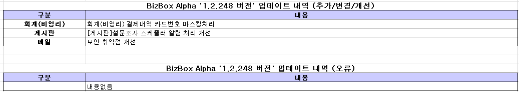 BizBox Alpha '1.2.248 버전' 업데이트 내역